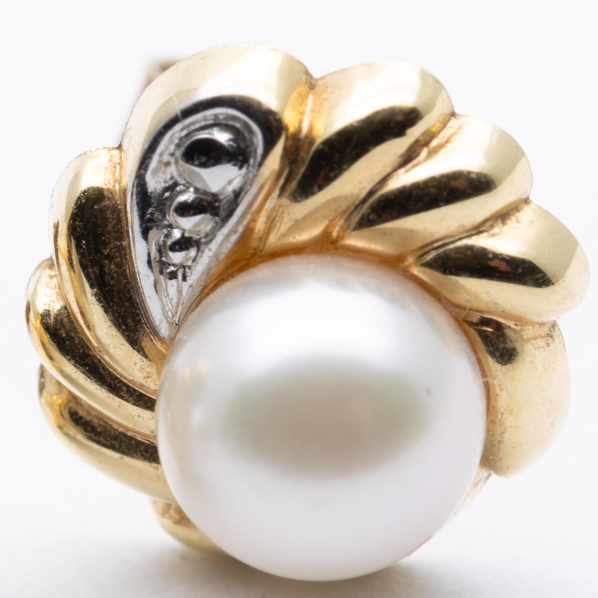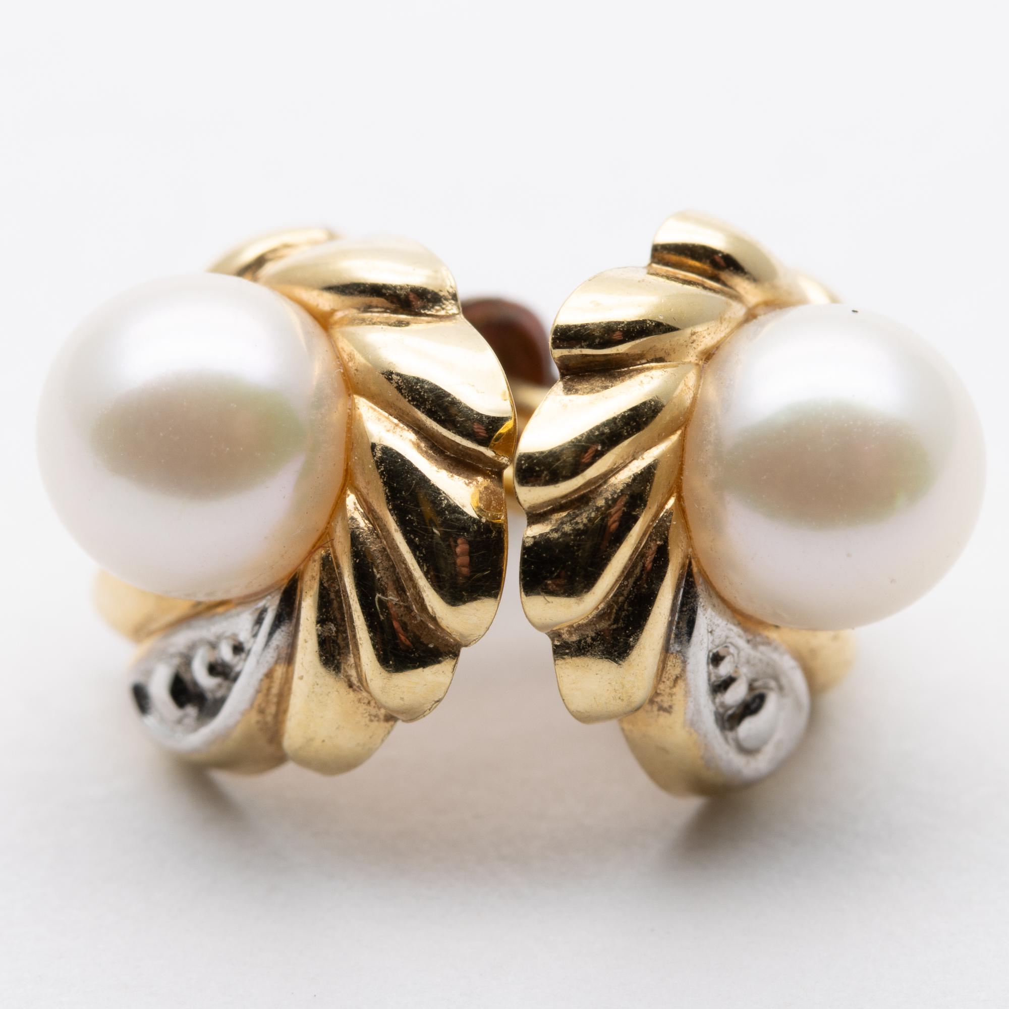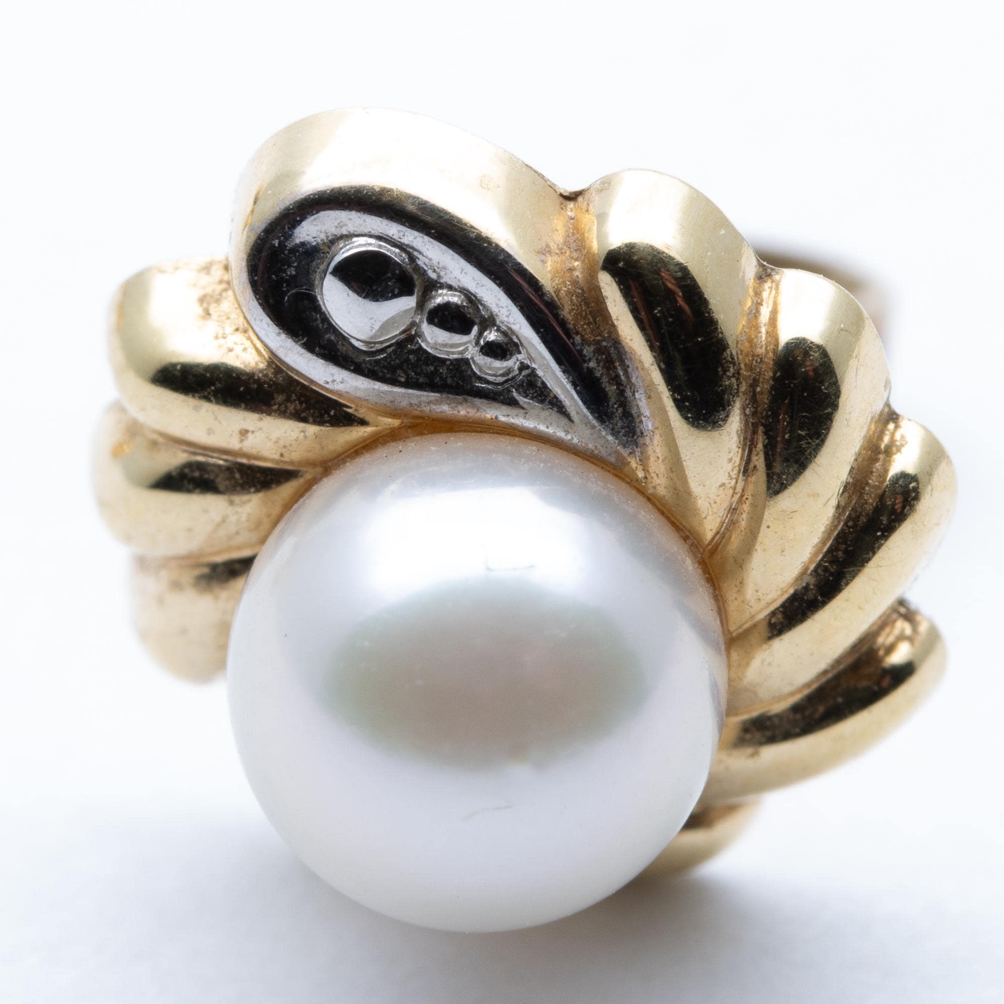 Pretty Vintage 9ct Yellow Gold Cultured Pearl Stud Earrings