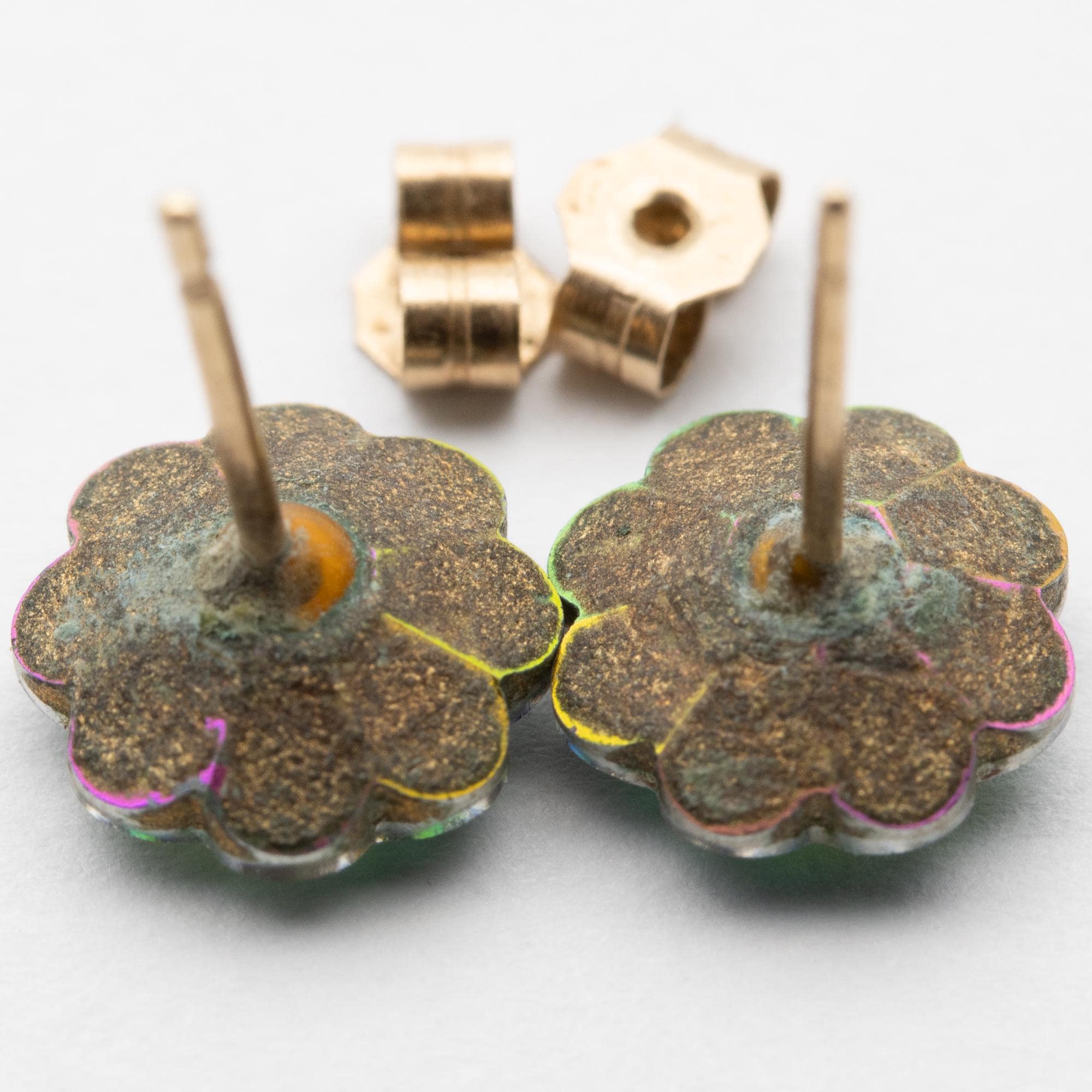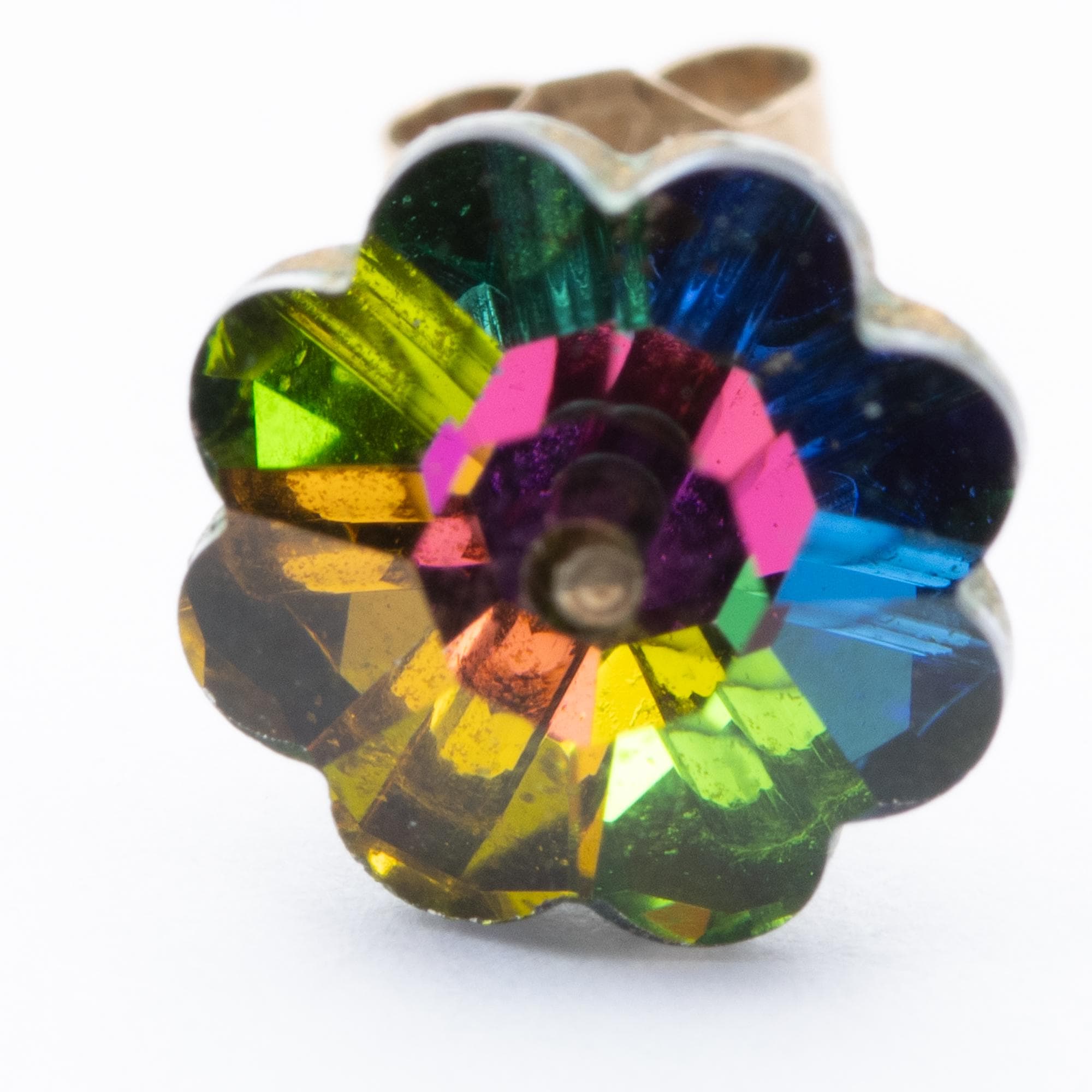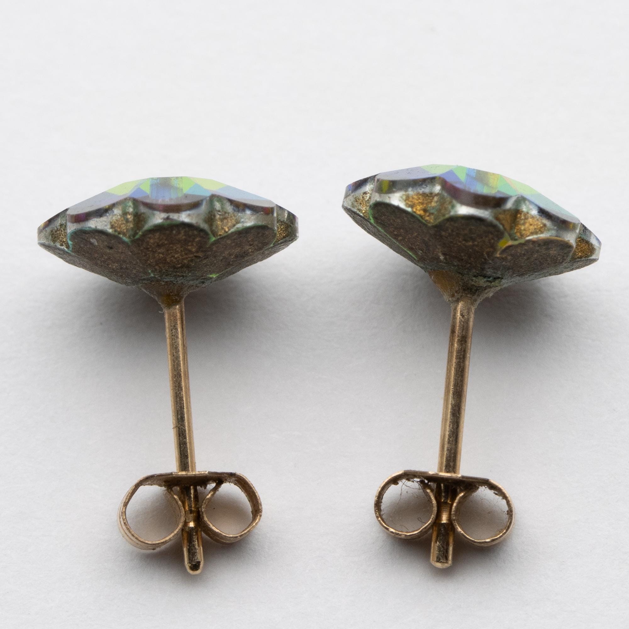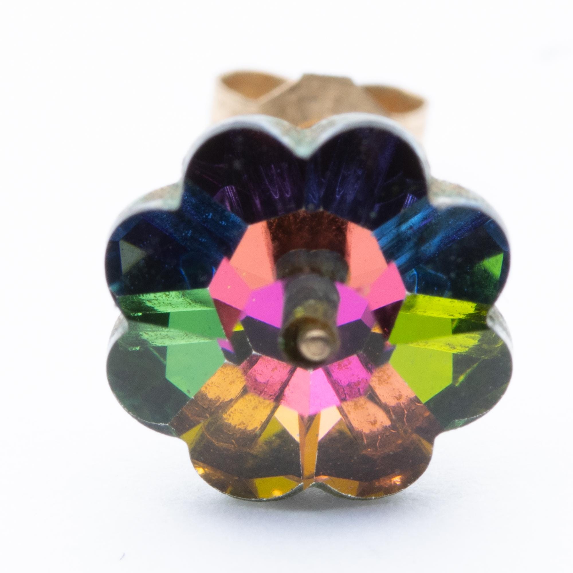 Pretty Vintage 9ct Yellow Gold Austrian Crystal Green & Pink Flower Stud Earrings