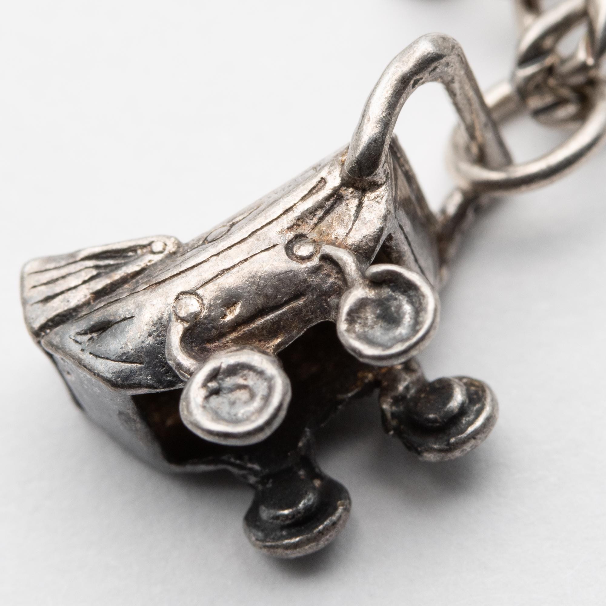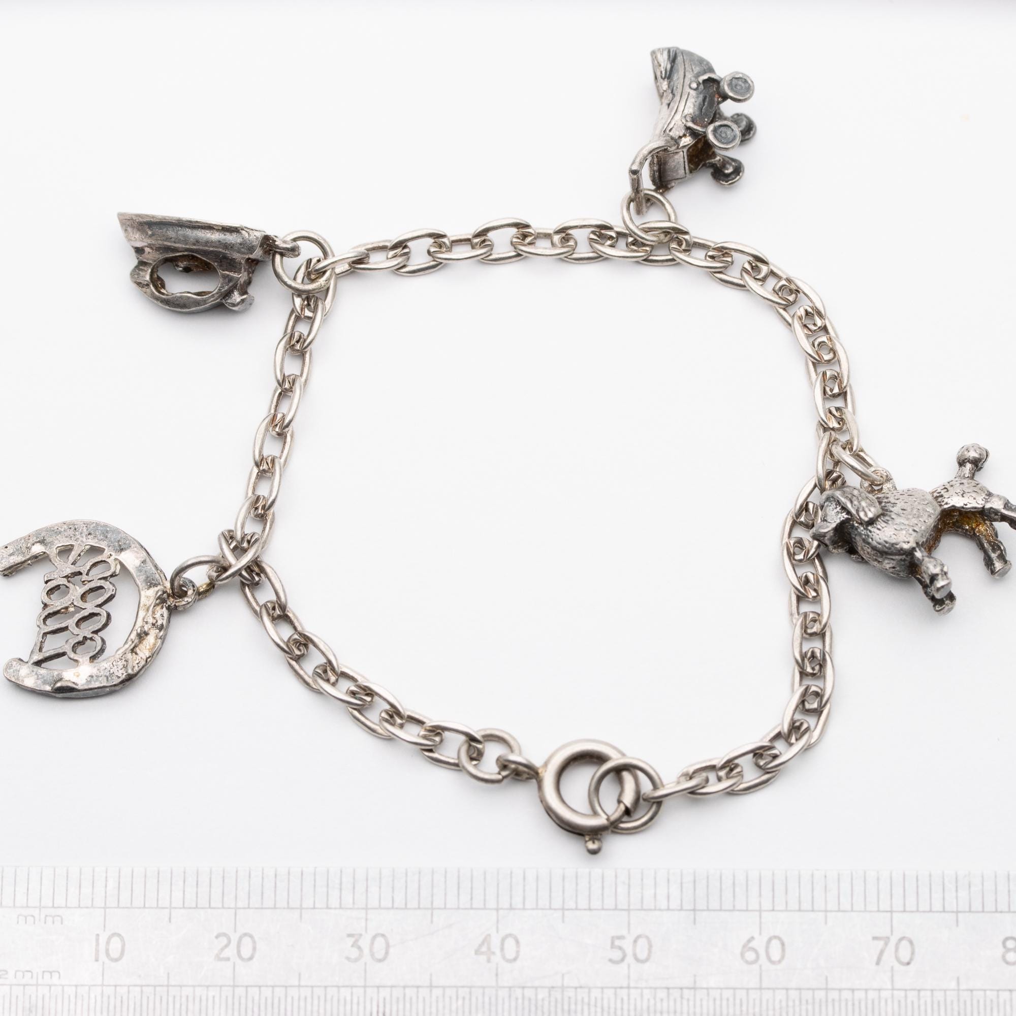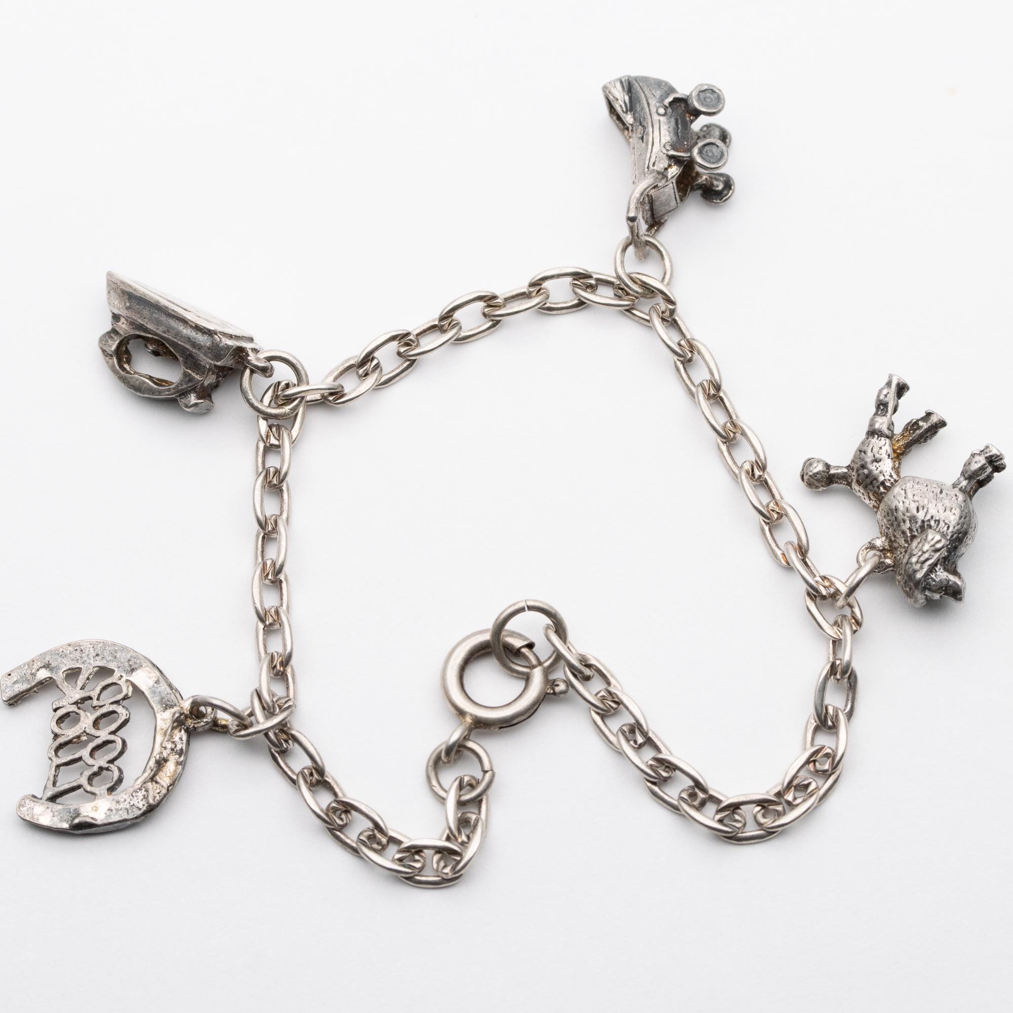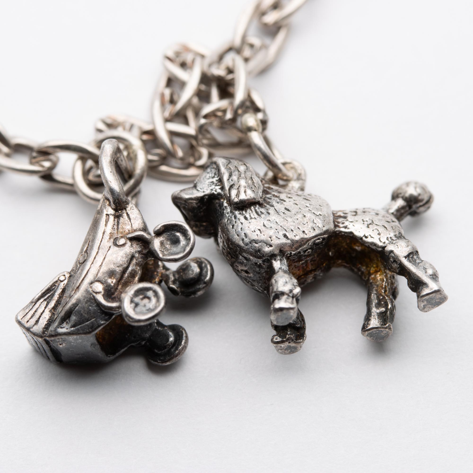 Sweet Vintage Sterling Silver Charm Bracelet – Poodle, Iron, Pram, Good Luck
