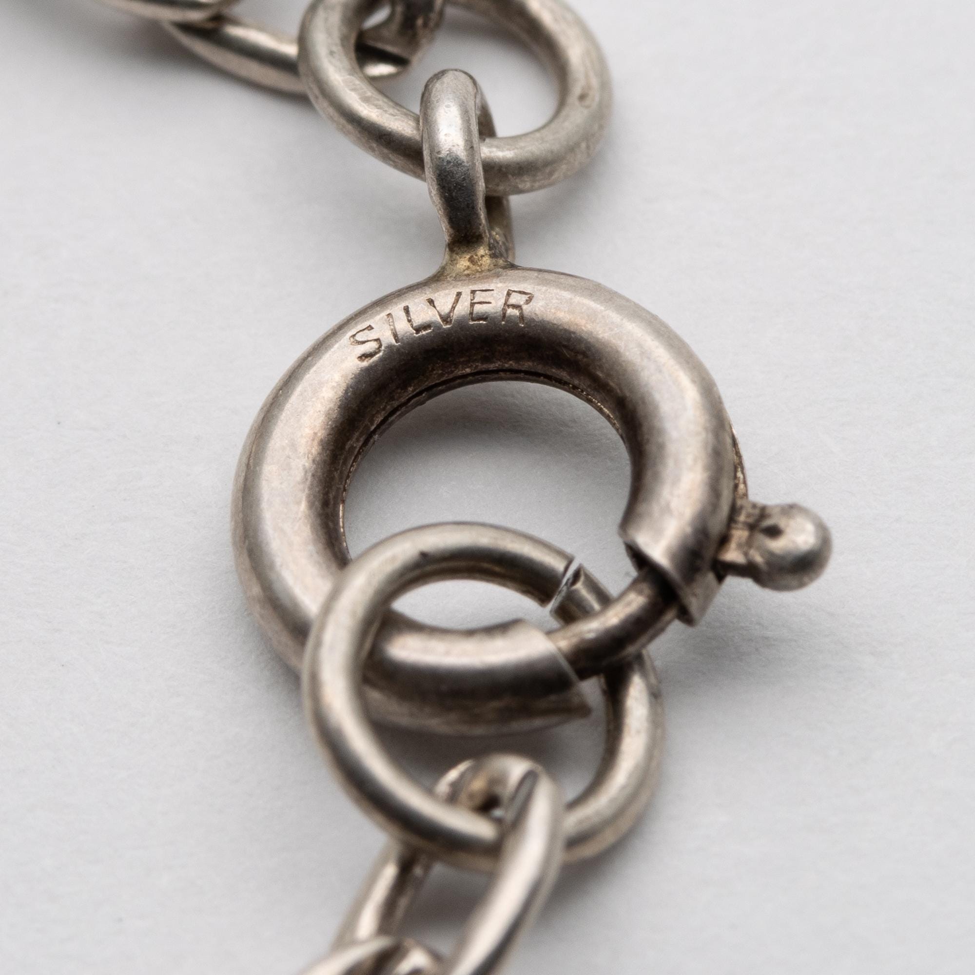 Hallmarks – marked silver on clasp, charms unmarked but tested.