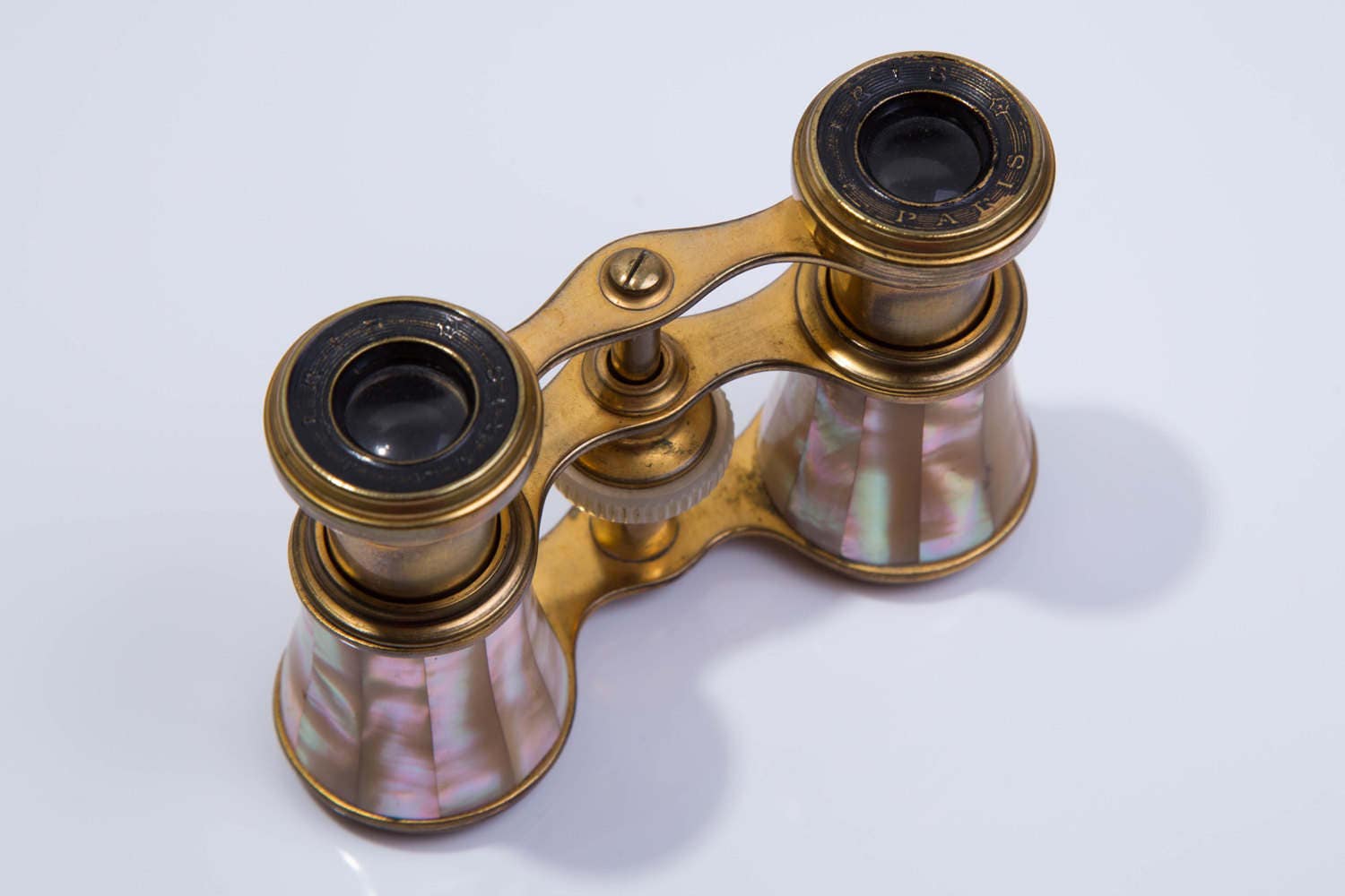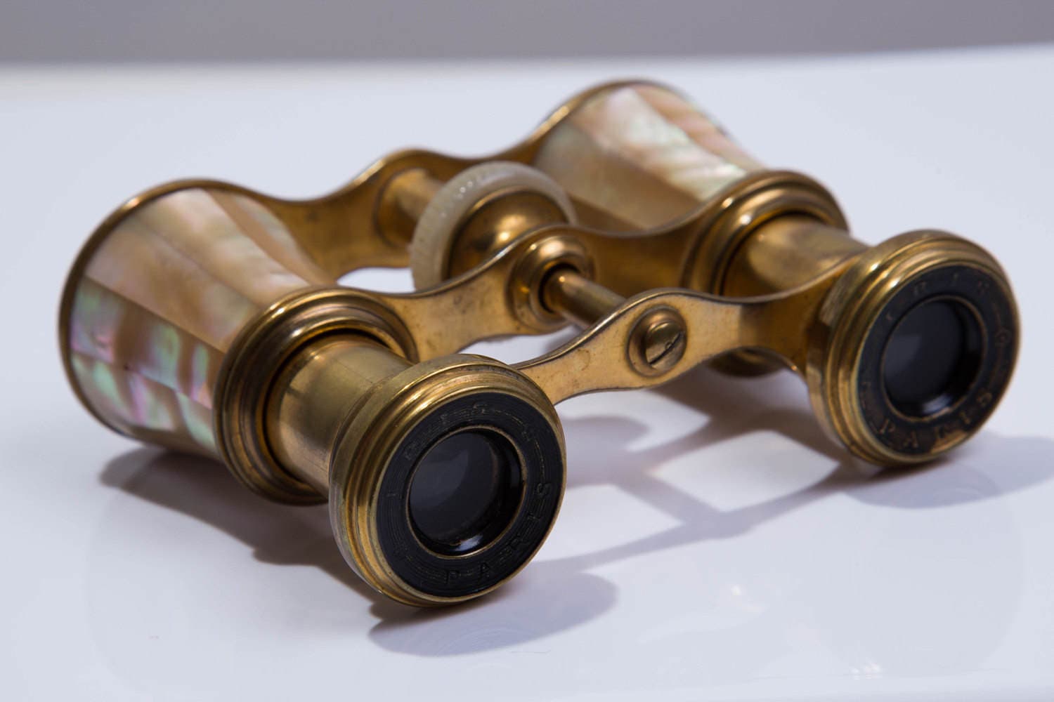 Antique Victorian French “Iris” Paris Mother of Pearl Brass Opera Glasses