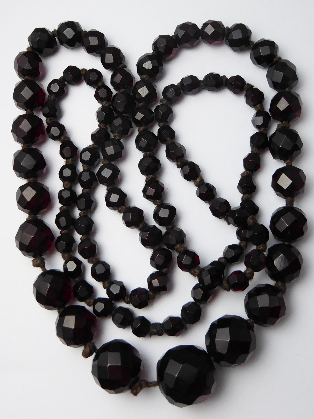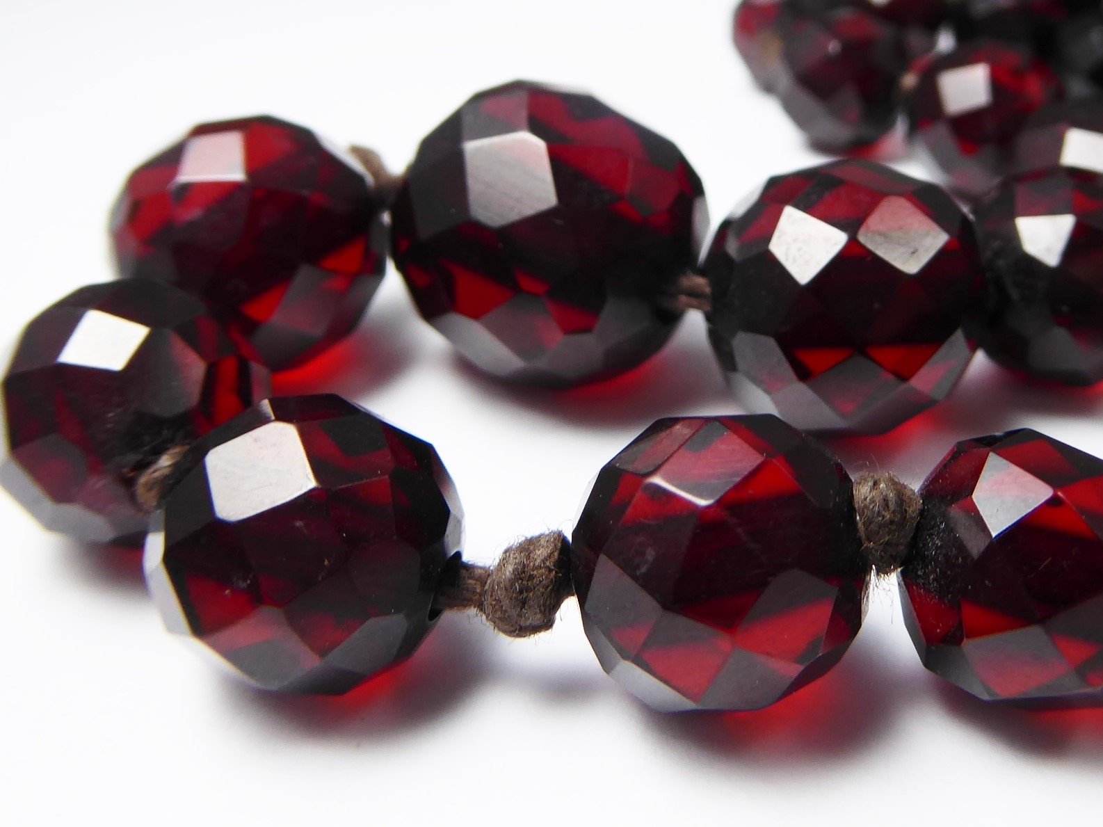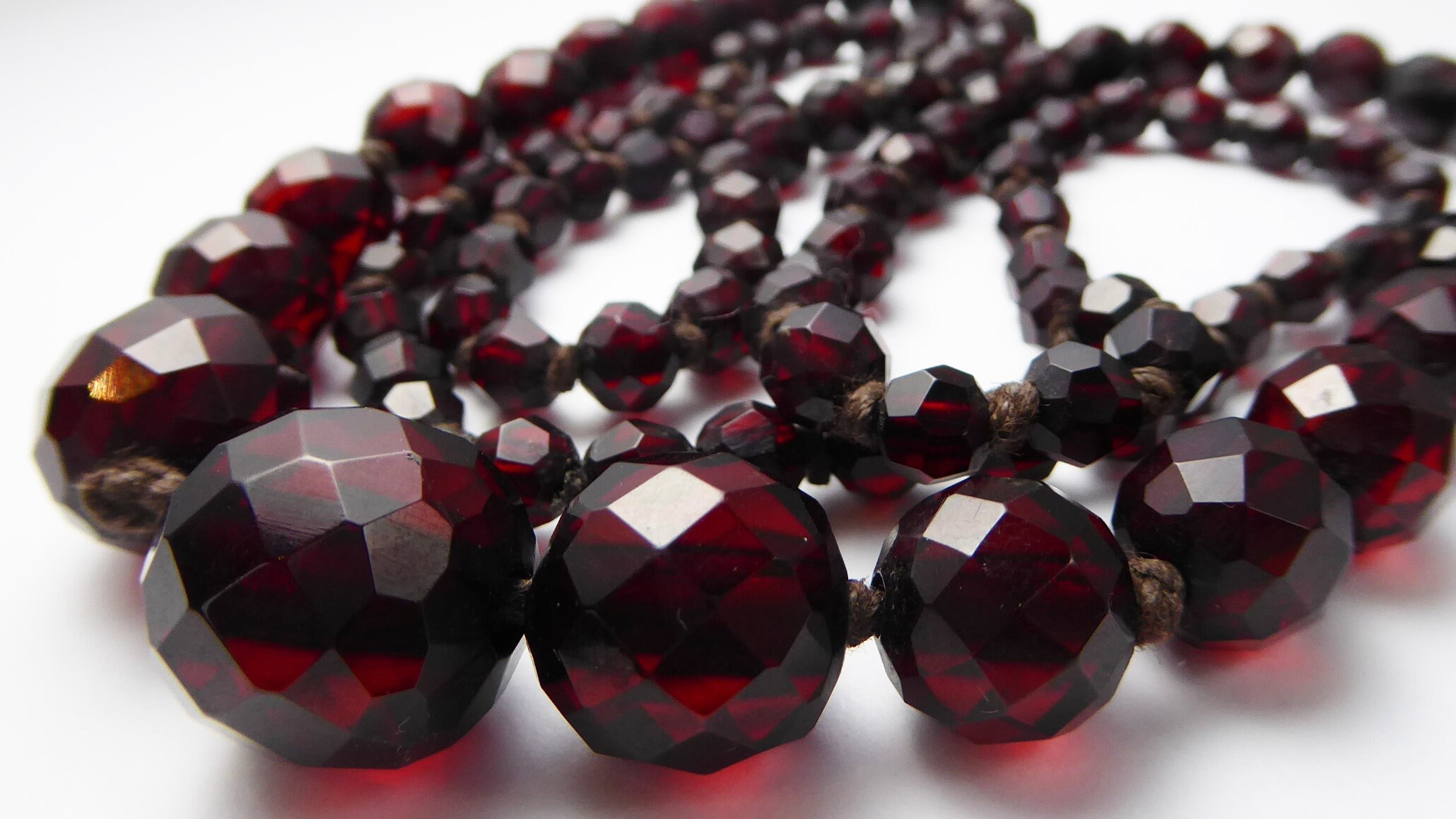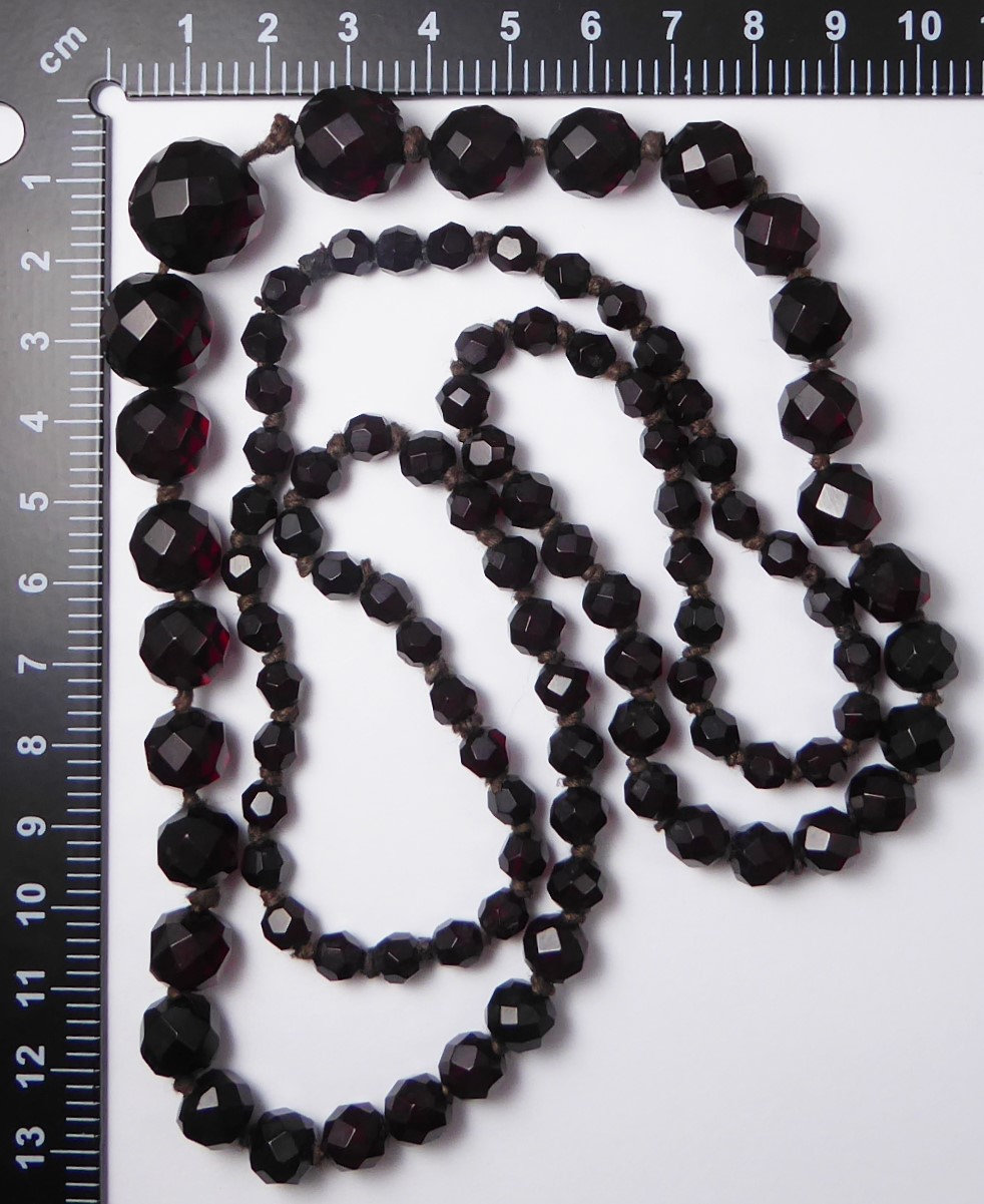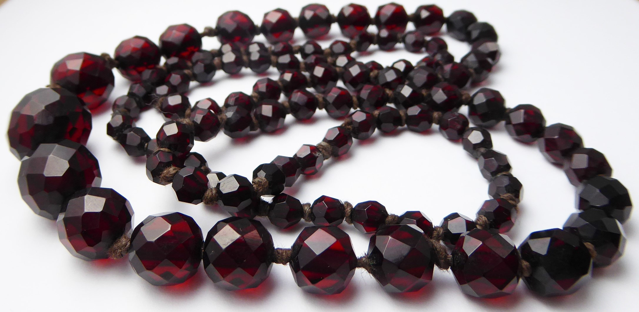 Antique Graduated Art Deco Faceted Cherry Amber Bakelite Bead Necklace