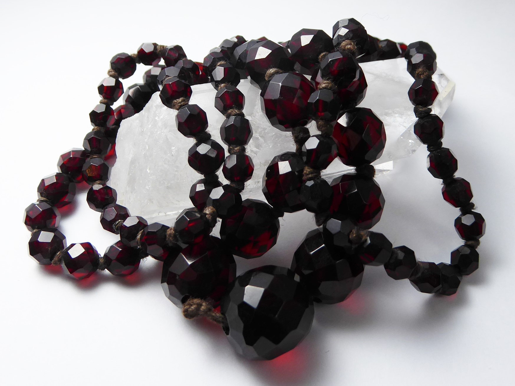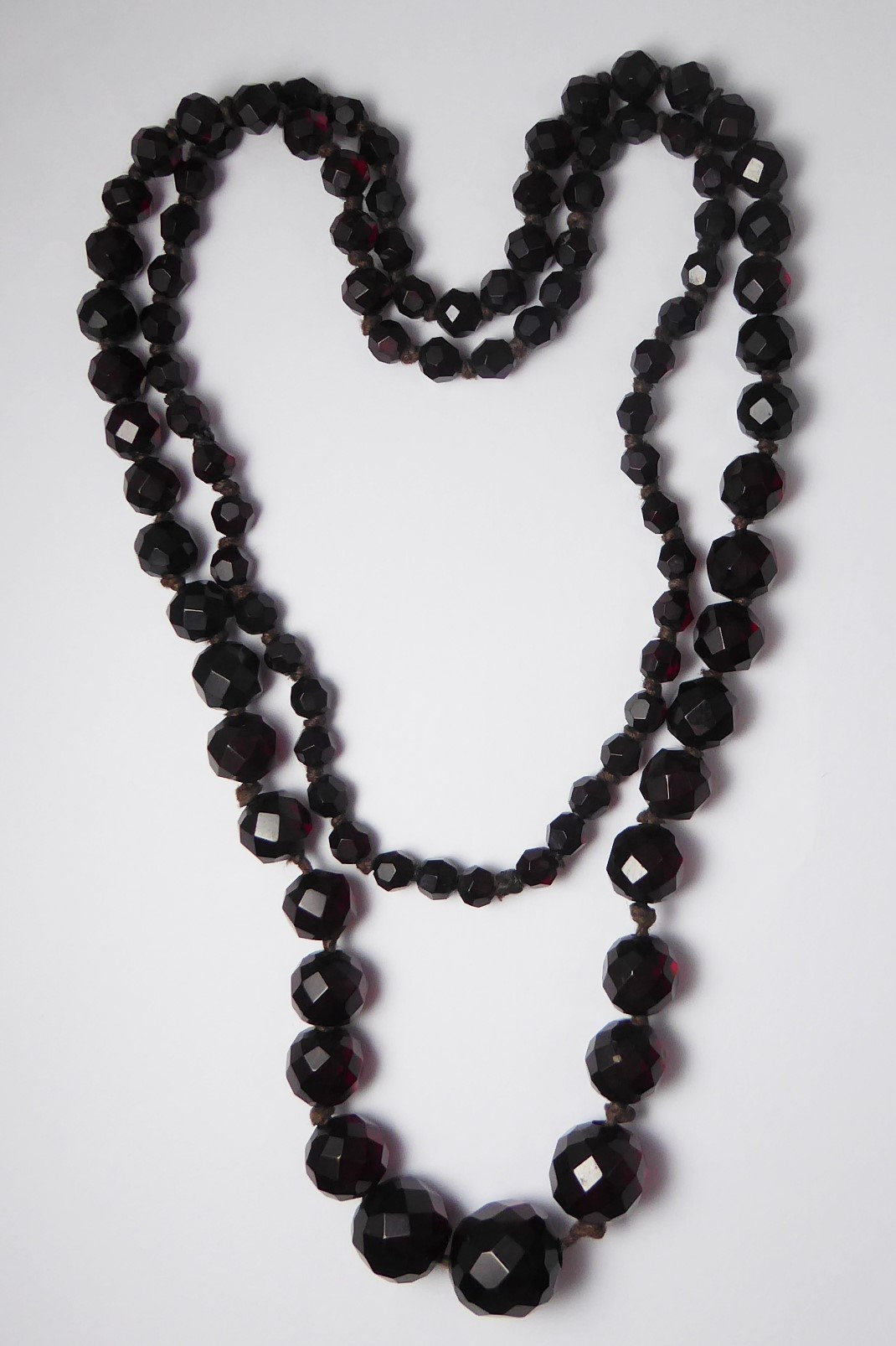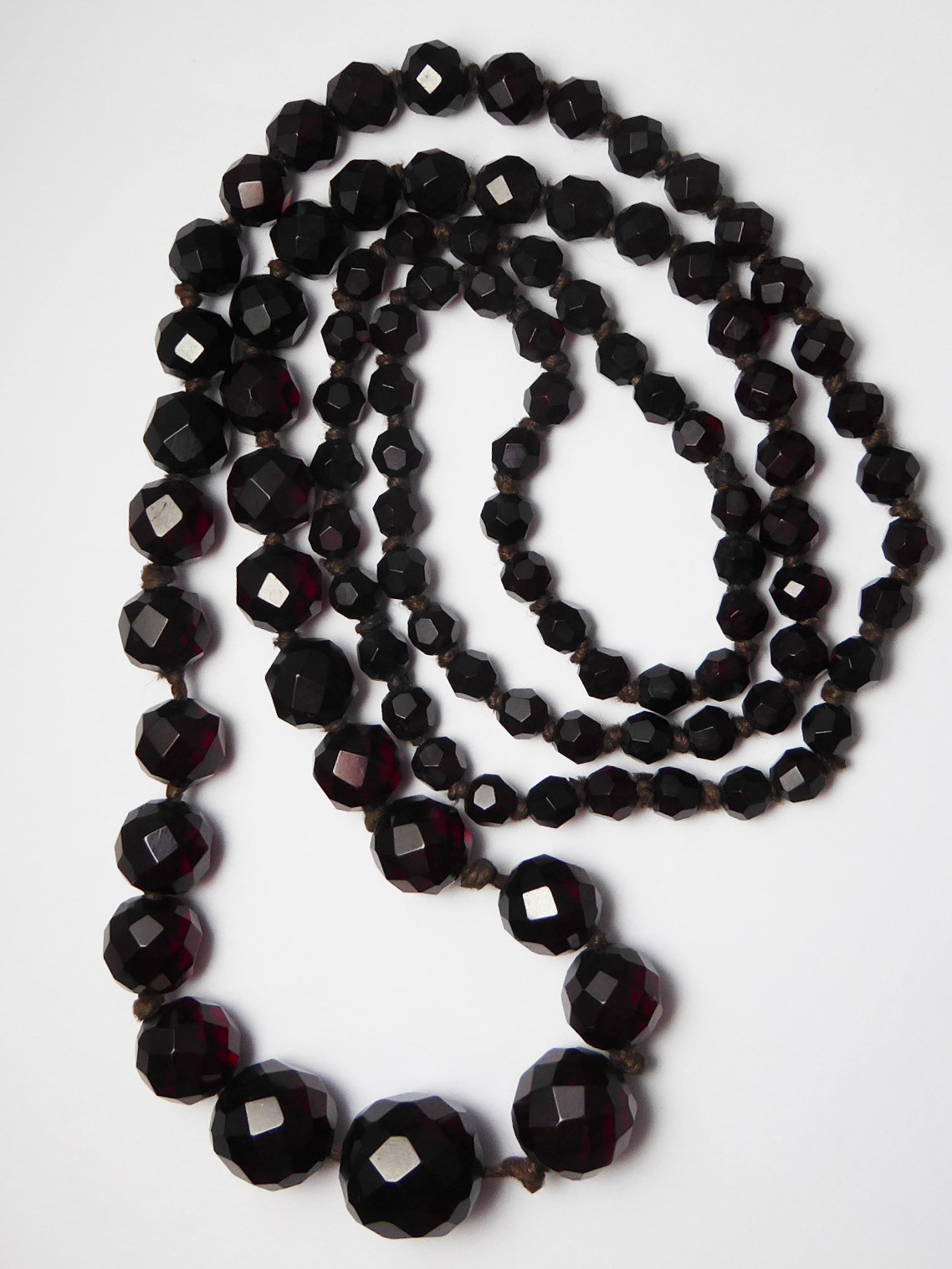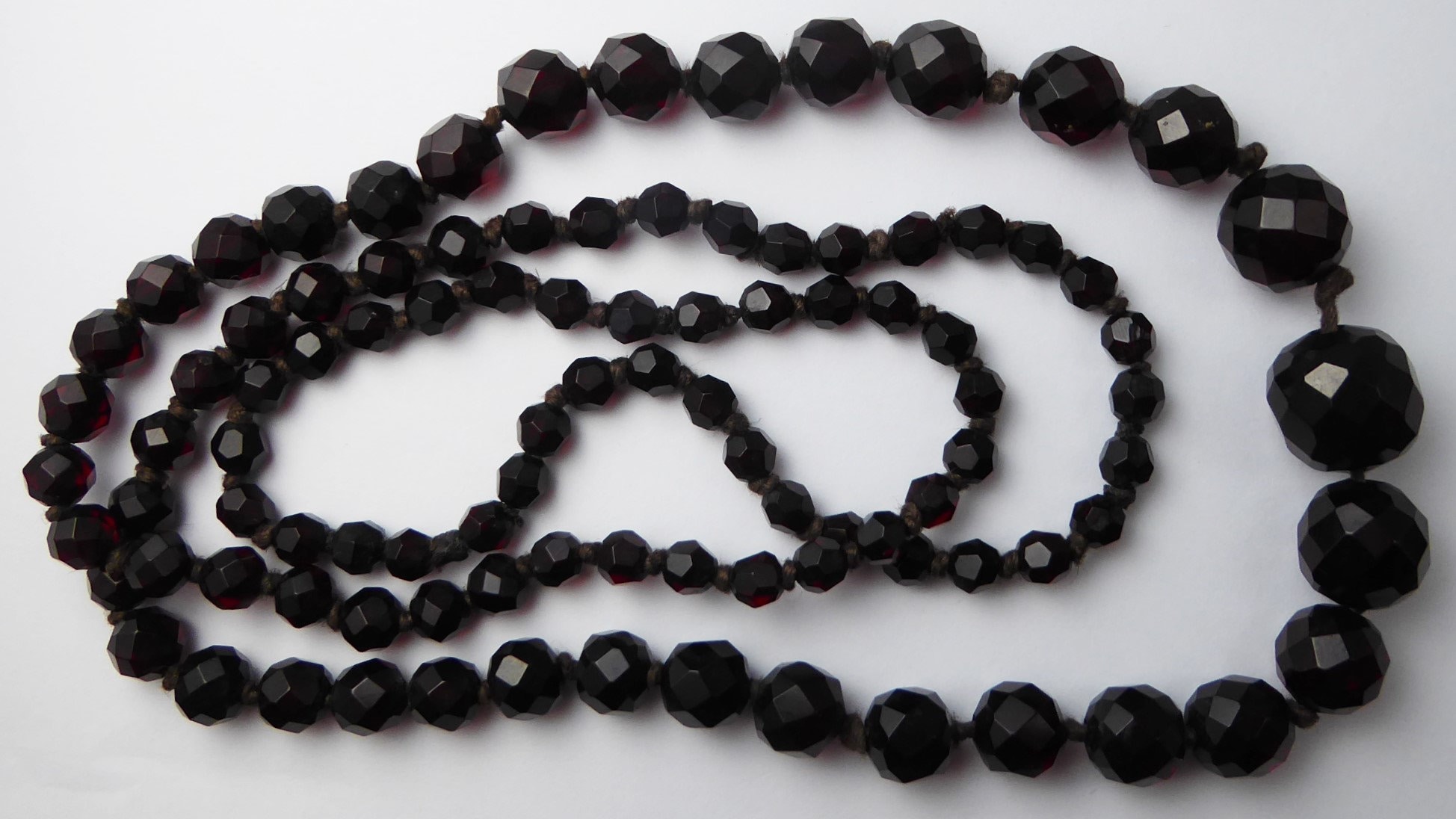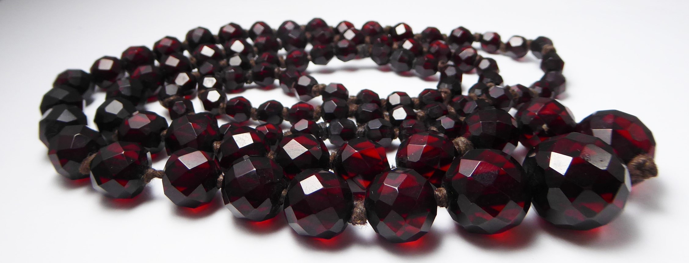 Antique Graduated Art Deco Faceted Cherry Amber Bakelite Bead Necklace