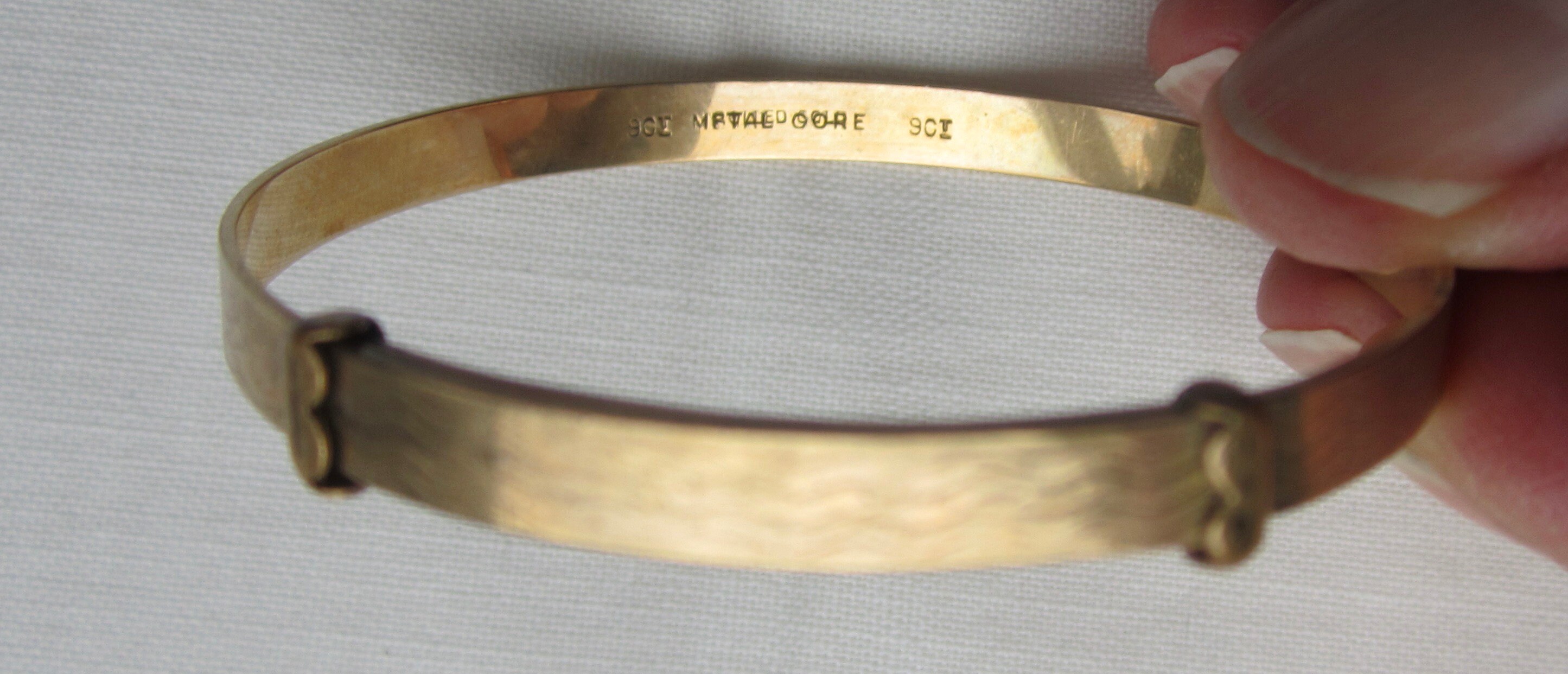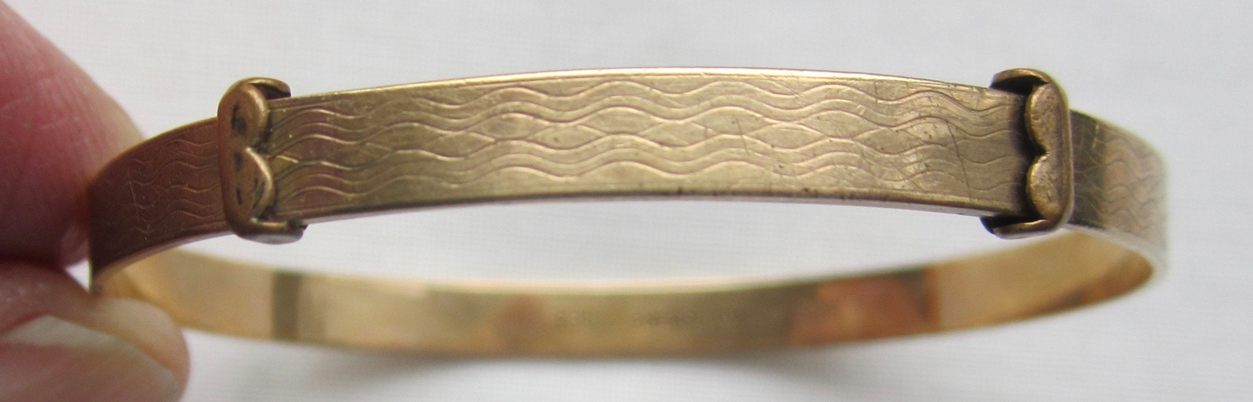 Vintage Art Deco 9ct Gold Metal Core Engine Turned Childs Bangle