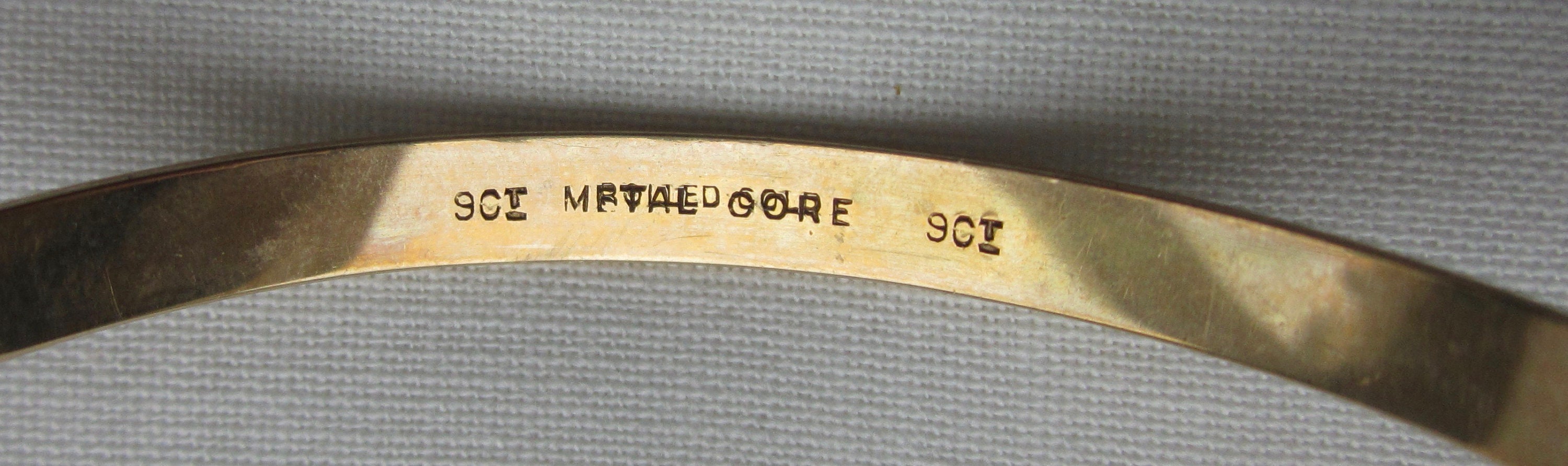 Hallmarks – marked 9ct metal core and acid tested